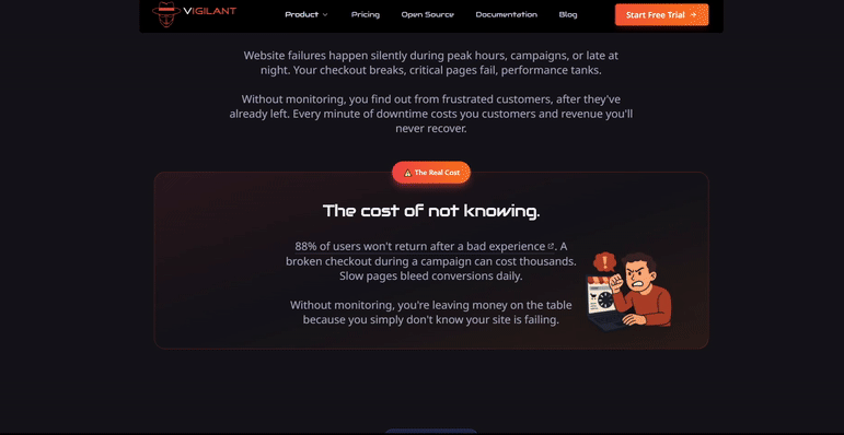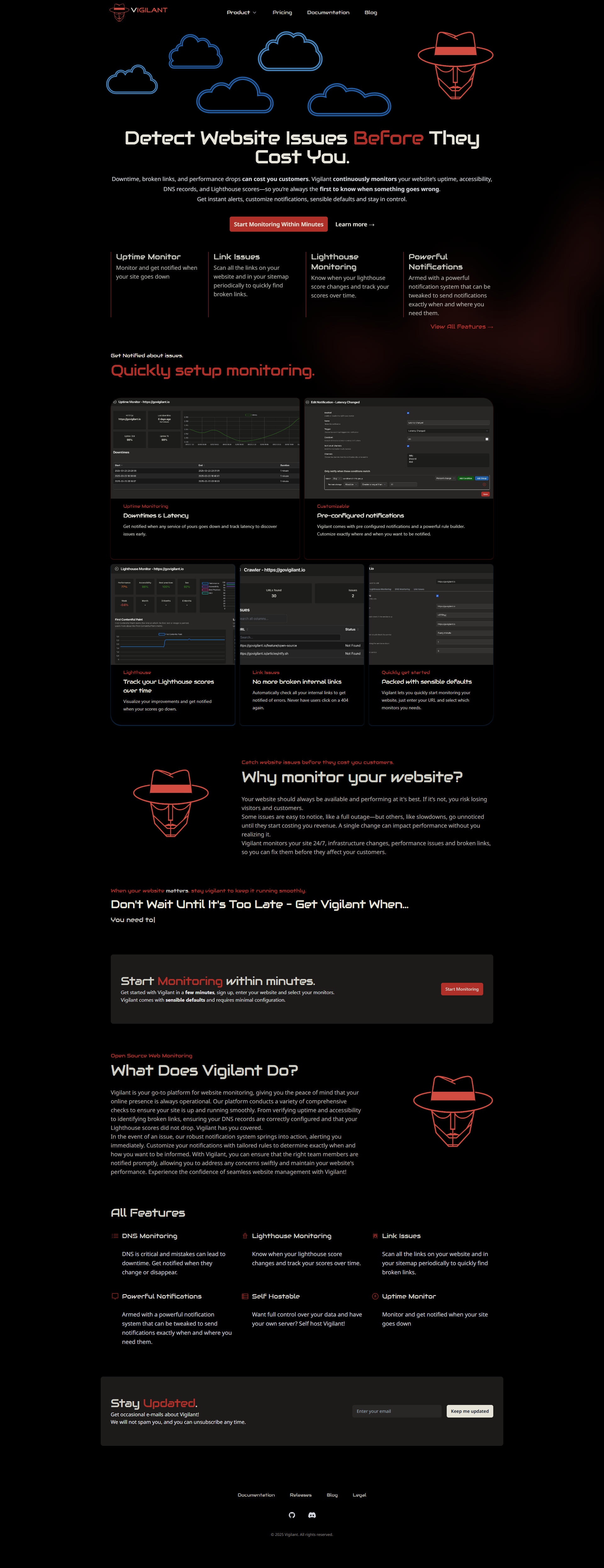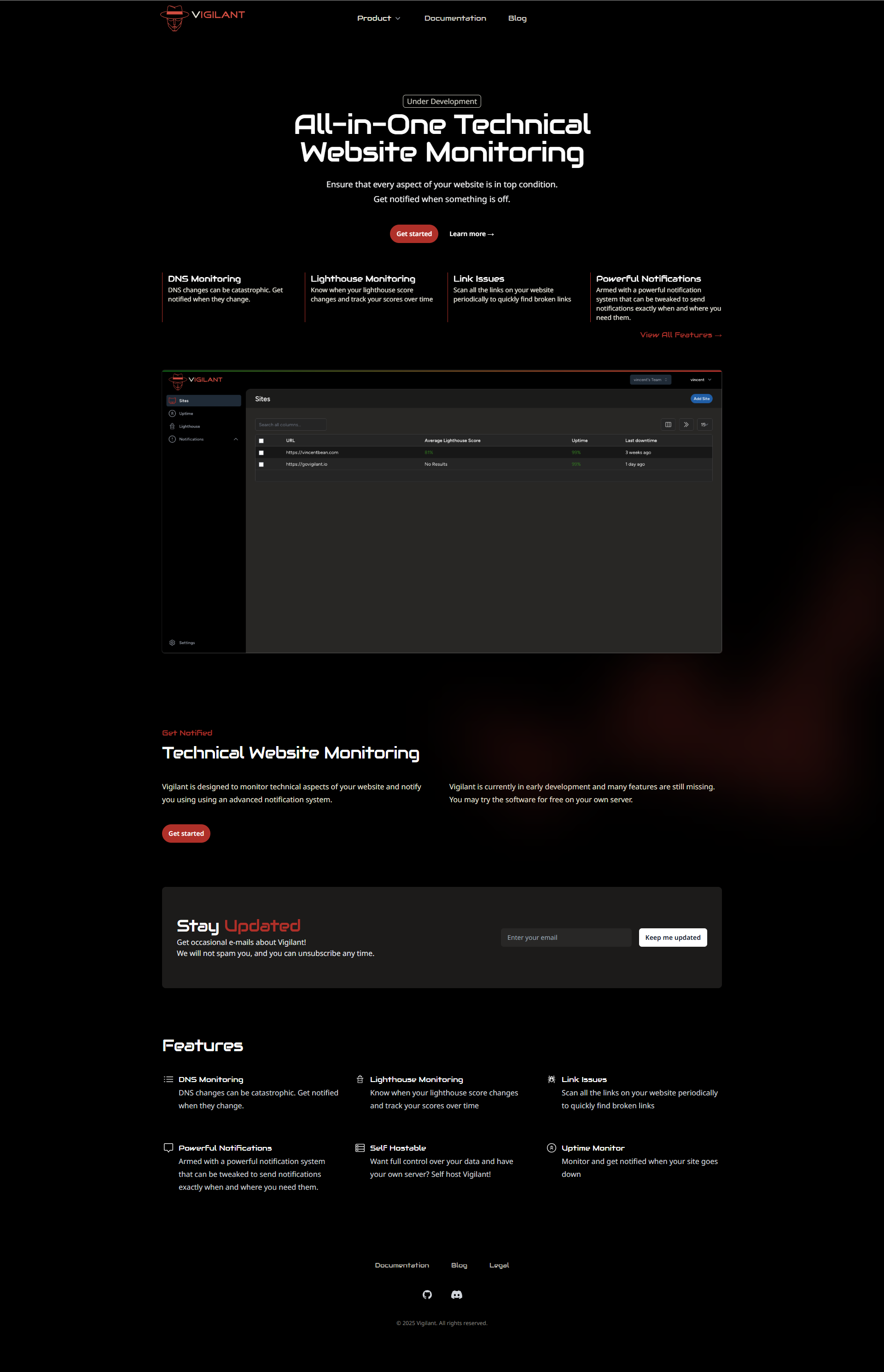 I've built Vigilant, a monitoring tool designed to monitor all aspects of your website. From basic uptime checks to more advanced checks like performance. user flows and public infrastructure. It started as an open source project and is now a SaaS using the open core structure.