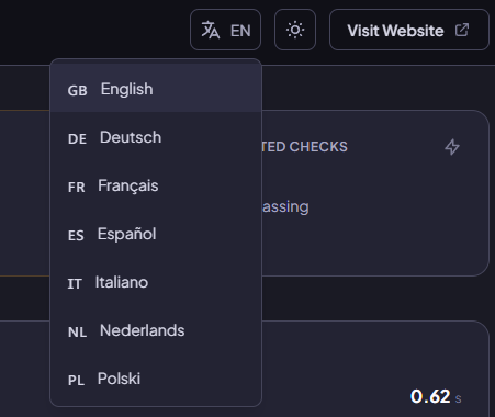 Client pages automatically detect the visitor's browser language and display content in their preferred language. Visitors can also switch manually. Supported languages include English, Dutch, German, French, Spanish, Italian and Polish so your international clients always feel at home.