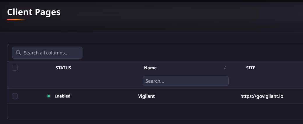 Enable or disable client pages with a single click. Manage all pages from one overview with search and bulk actions.